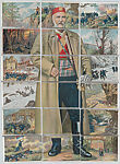 This set of puzzle cards details the history of Montenegro leading up to the War, touching on geography, industry, and society. On either side of the central figure, King Nicholas I, are scenes of Montenegro's military campaigns throughout World War I.