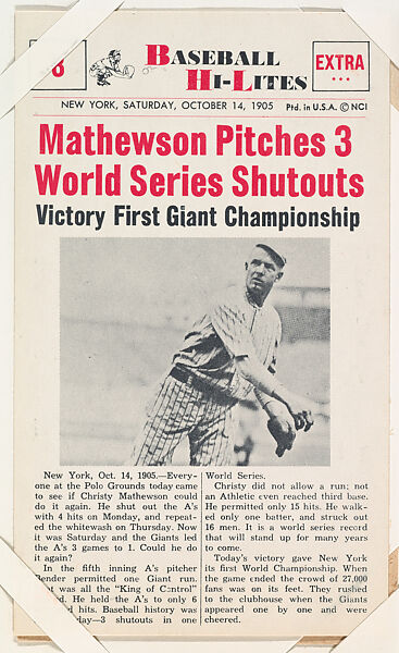 - Title:Christy Mathewson #8 from Nu-Card Baseball Hi-Lites series (W460)
