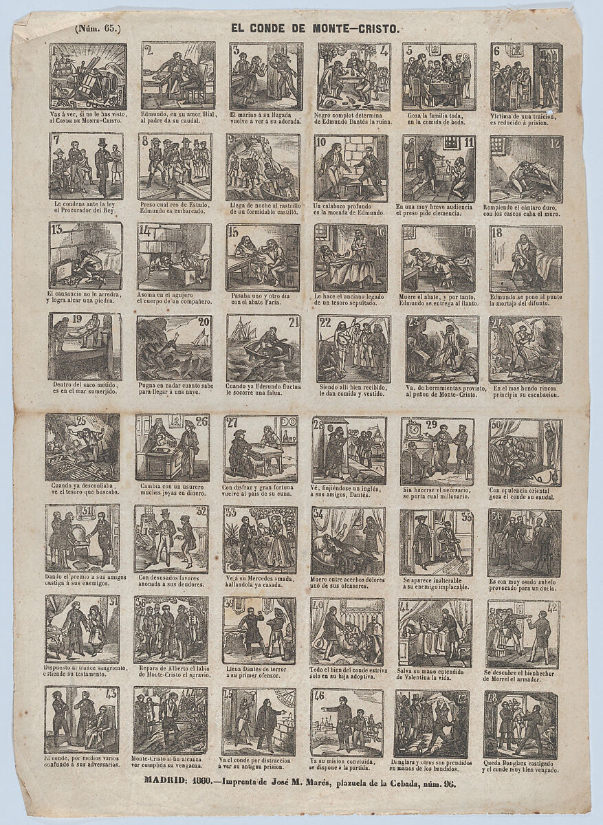 - Title: Broadside with 48 scenes from the life of the Count of Monte Cristo
