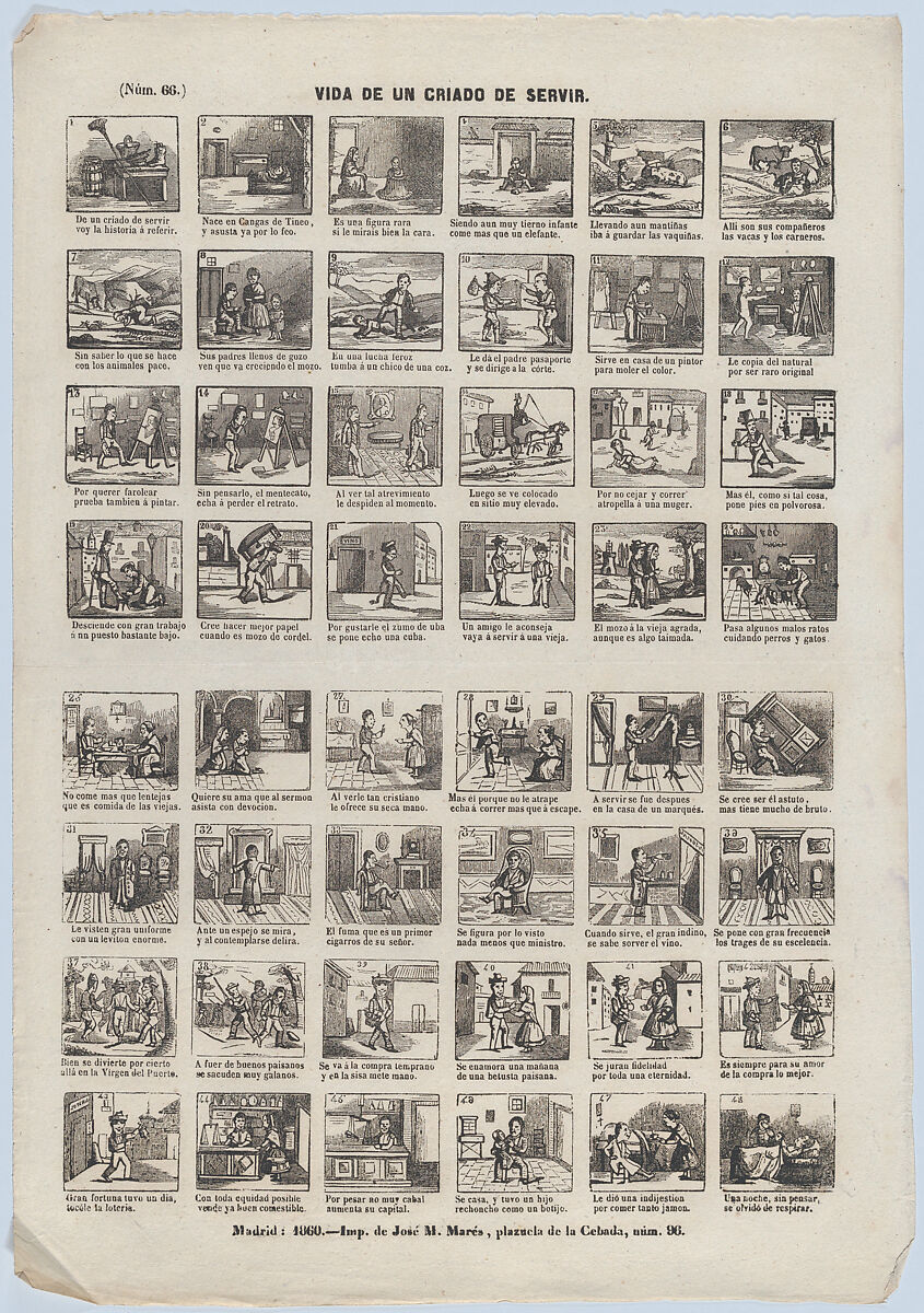 - Title: Broadside with 48 scenes from the life of a male servant