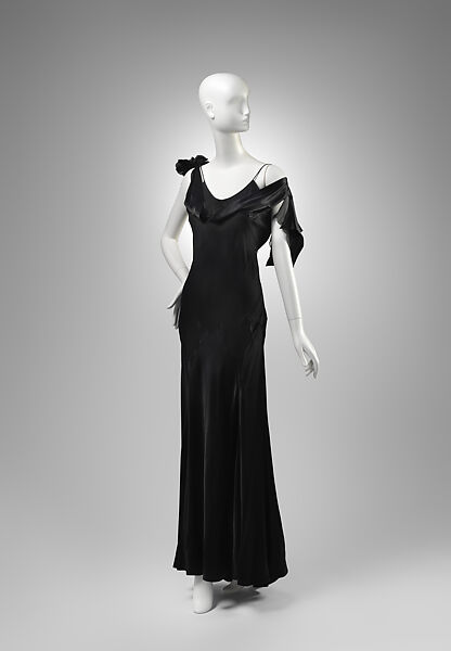 This bias-cut evening dress by British designer John Galliano was part of the spring/summer 1994 “Princess Lucretia” collection, a romantic and historically inspired, collection with references to the Russian imperial family of the Romanovs and the lost Princess Anastasia, to Leo Tolstoy’s novel Anna Karenina, to The Piano directed by Jane Campion, to the Duke of Edinburgh, and finally, to Madeleine Vionnet’s 1920s bias-cut, sylph-like dresses. Vionnet is an enduring source of inspiration for Galliano who has emulated her ingenious bias-cut approach in his collections since spring/summer 1989, propelling bias-cut slip dresses to the forefront of fashion as they became a hallmark of 1990s eveningwear.