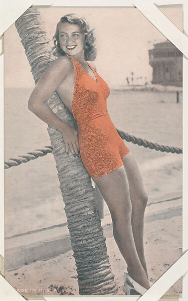 From Actress series (W423). Sold through arcade vending machines. Postcard-sized thick card. Black and white with color additions. Blank back. Printed at lower edge of card, in white: MADE IN U. S .A.