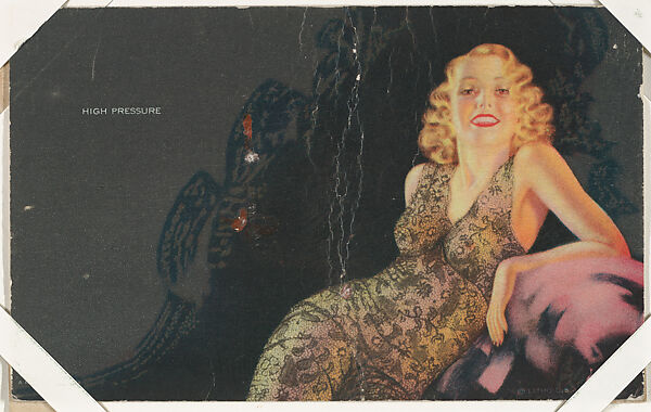 From All American Girls series (W424). Published by International Mutoscope Reel Company 1941. Sold through arcade vending machines. From a set of 33. Postcard-sized thick card. Full color. Blank back. Billy DeVorss artist. Printed lower right: © LITHO U. S. A..