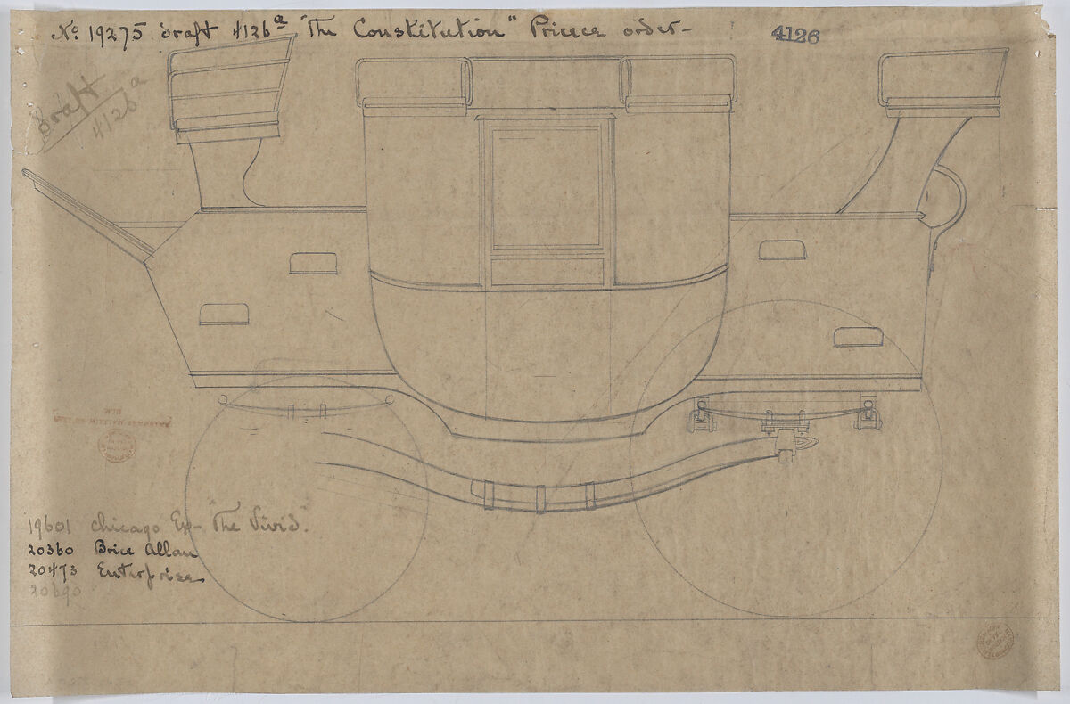 Talented draftsmen employed by the firm included Paul Steinbeck, Herman Stahmer and John Gribbon, the latter teaching at the Carriage Builders and Designers Technical School, which opened in 1880 and was housed initially at the Metropolitan Museum of Art. When the company finally dissolved in 1923, its last owner William Brewster (1866–1949) donated its archive of design and presentation drawings to the Museum where he served as benefactor and trustee.