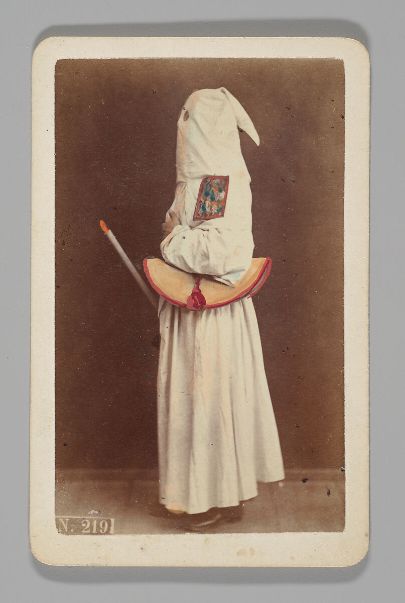 - Title: [Studio Portrait: Person Wearing White Robe and Face Covering Hood, Naples]