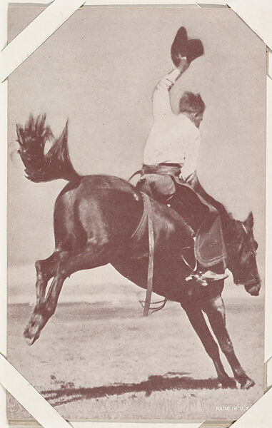 - Title: Cowboy waving hat on back of bucking bronco from Indians and Western Historical Scenes series (W417)