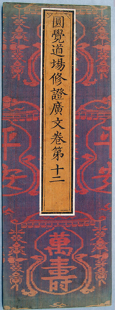 Sutras printed in the accordion-fold format were often encased by covers wrapped in decorative silks. Covers both protected the sacred words and presented the sutras in beautiful envelopes that signaled the importance of the contents within. These examples from the sixteenth century indicate the variety of sutra cover motifs, including some seemingly irrelevant to Buddhist philosophy, such as dragons, phoenixes, or the character shou, meaning longevity