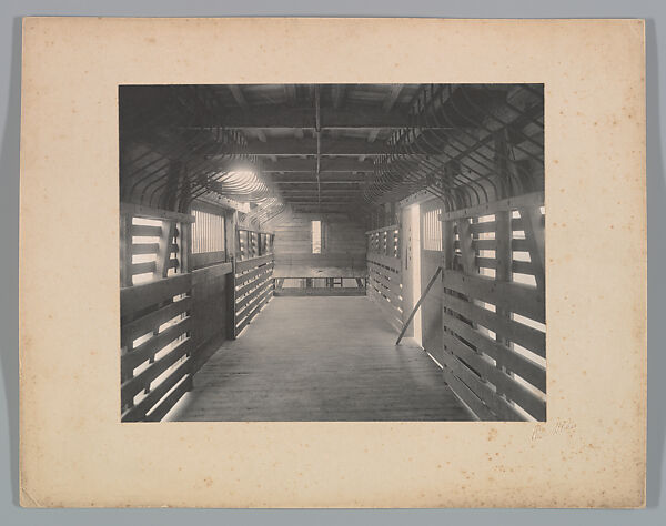 Born in Philadelphia, Rau photographed extensively throughout the American West, Mexico, Europe, and the Middle East. He also participated in an international scientific expedition to New Zealand’s Chatham Islands, where he recorded the Transit of Venus across the sun in 1874. After opening his own photography business in 1885, Rau attained prominence for his photographs documenting scenery along the Pennsylvania Railroad and as official photographer of the Lehigh Valley Railroad. For these commissions, he traveled across the Mid-Atlantic region in a railroad car specially outfitted as a luxury photography studio. The resulting images—made with mammoth glass negatives and albumen prints—intentionally recalled the bygone era of Western expansion and the work of pioneering photographers such as Eadweard Muybridge, Carleton Watkins, Timothy O’Sullivan, and William Bell (the artist’s mentor and father-in-law), with the aim of introducing city dwellers to the natural beauty of their own East Coast backyard. In this modestly sized platinum print from an eight-by-ten-inch glass negative, Rau transformed the interior of a railroad car into a harmonious pictorial study of light and shadow. The spare composition accentuates the formal beauty that Rau found amid the industrialization of America.