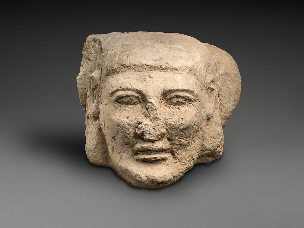 With its short projecting beard, this monumental head portrays the image of an Asiatic man as one of Egypt’s prototypical enemies. Part of a series of such heads, it most probably decorated a window in a palace façade, through which the king would appear overlooking a courtyard. Seeming as if lying below him, these heads would appear as if fallen under the Pharaoh’s dominion. This imagery thereby symbolizes the king’s power to subdue any force of chaos threatening Egypt’s, and therefore the world’s stability.