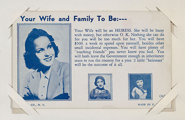 - Title: Your Wife and Family to Be:--- from Exhibit Fortunes (W432)