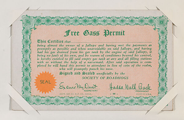 Free Gass Permit License from Exhibit Comics Cards (W431)