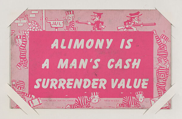 - Title: Alimony is A Man's Cash Surrender Value from Exhibit Comics Cards (W431)