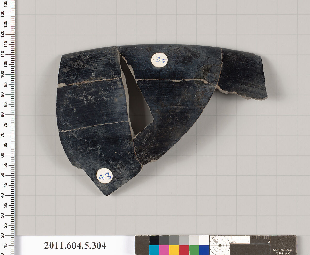 - Title:Terracotta rim fragment of a kylix (drinking cup)