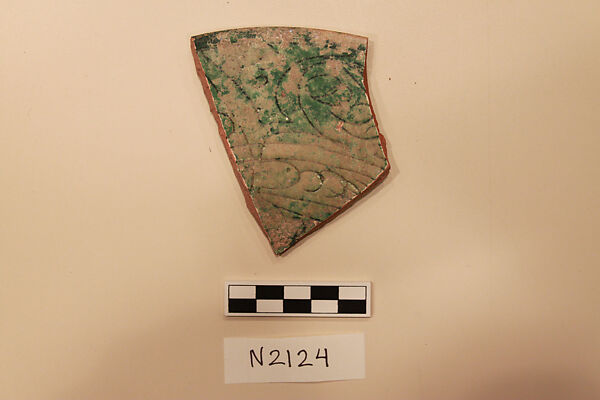 - Medium:Earthenware; white slipped, incised with a green glaze