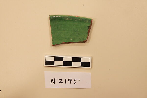 - Medium: Earthenware; white slipped, slip-painted under a green glaze