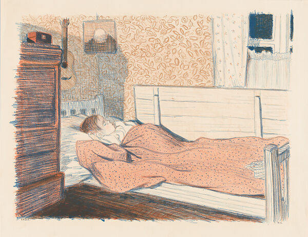 - Title: Evening, a bedroom interior with child asleep in bed, from "The Swedish Fine Art Print Society Portfolio" (Föreningen för Grafisk Konst)