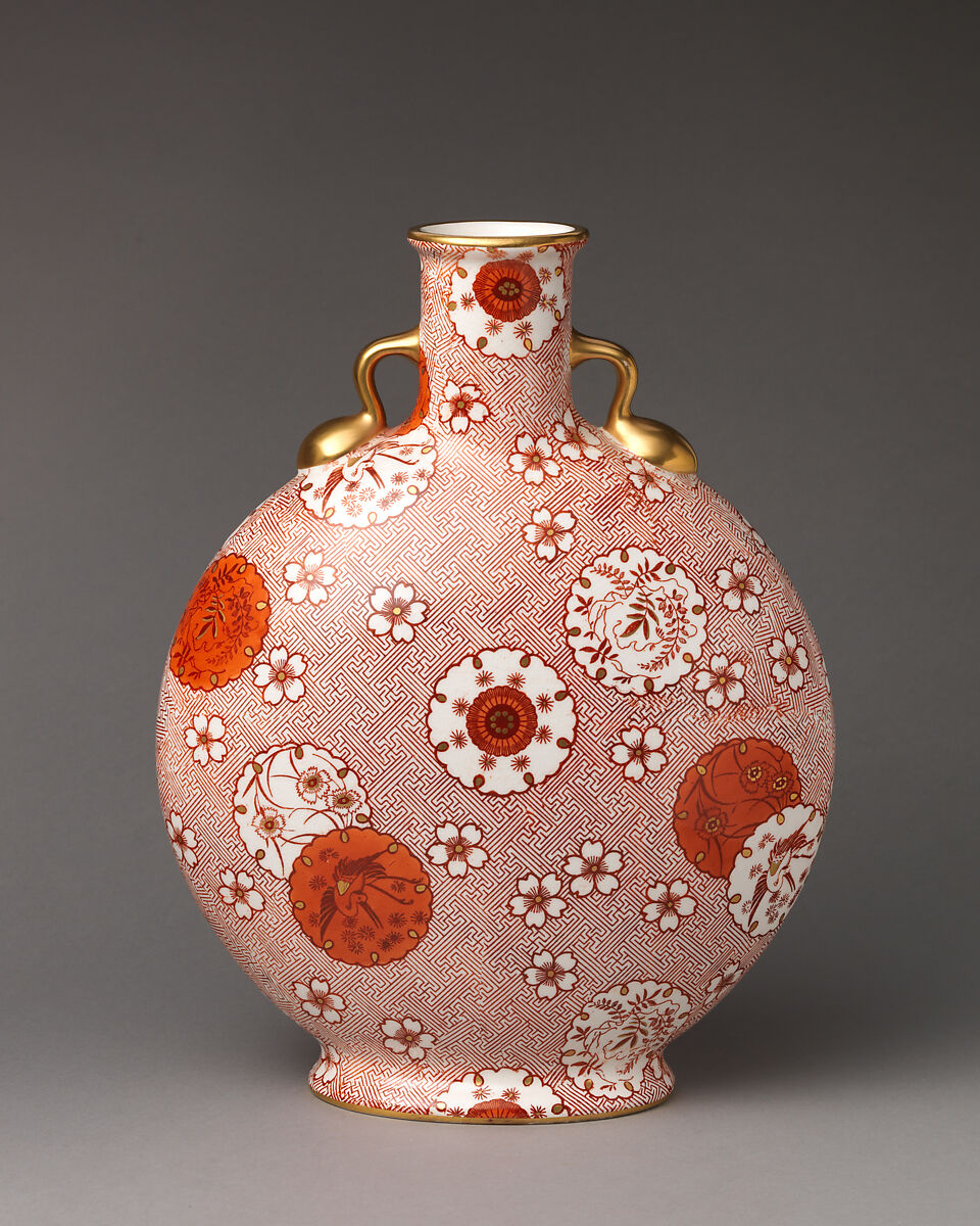Minton was the most important ceramics factory during the Victorian period and began exhibiting products at the first Great Exhibition of 1851. Founded in 1793 by Thomas Minton at Stoke-on-Trent, the firm initially specialized in transferware pottery before expanding under the ownership of Thomas’s son Herbert Minton, beginning in 1836. Under the ownership of Colin Minton Campbell, who succeeded his uncle in 1858, the factory became recognized as a specialist producer of Aesthetics movement porcelain, which were inspired by a rich array of exotic and eclectic decorative motifs.