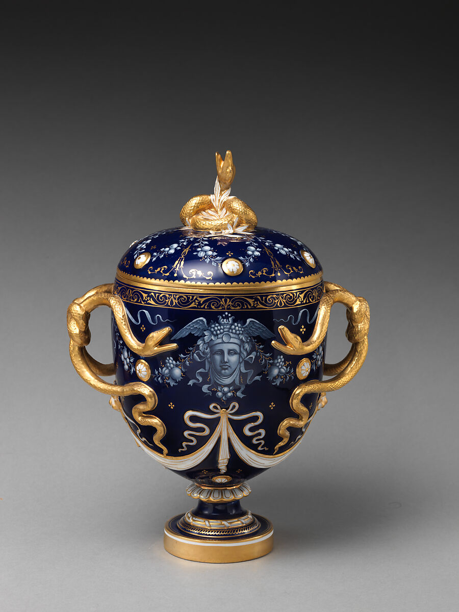 - Title: Lidded vase with Medusa decoration and snake handles