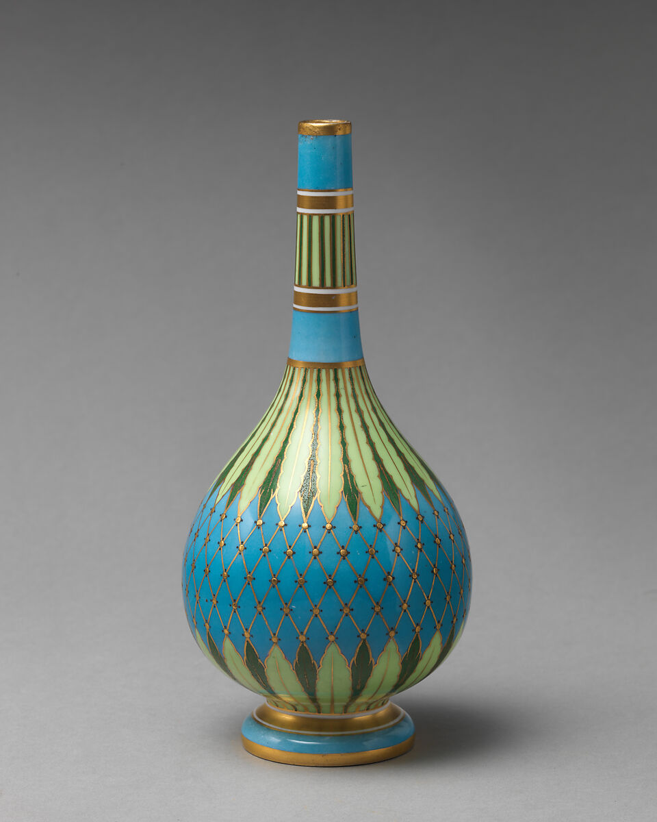 Minton was the most important ceramics factory during the Victorian period and began exhibiting products at the first Great Exhibition of 1851. Founded in 1793 by Thomas Minton at Stoke-on-Trent, the firm initially specialized in transferware pottery before expanding under the ownership of Thomas’s son Herbert Minton, beginning in 1836. Under the ownership of Colin Minton Campbell, who succeeded his uncle in 1858, the factory became recognized as a specialist producer of Aesthetics movement porcelain, which were inspired by a rich array of exotic and eclectic decorative motifs.