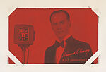 From TV and Radio Stars Exhibit Cards series (W409). Distributed by Exhibit Supply Company of Chicago, Mutoscope or other companies. Postcard-sized thick card. Dispensed in arcade machines. Black and white or sepia toned cards. Red toned.