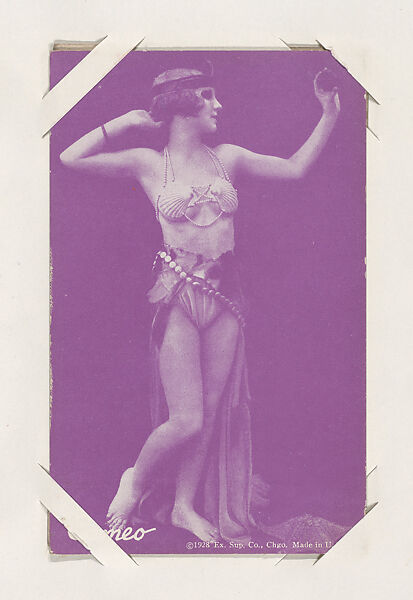 From Actress series (W423). Distributed by Exhibit Supply Company of Chicago. Sold through arcade vending machines. Postcard-sized thick card. Purple toned.