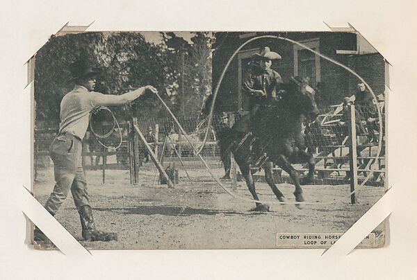 - Title: Cowboy riding horse through loop of lasso from Indians and Western Historical Scenes series (W417)
