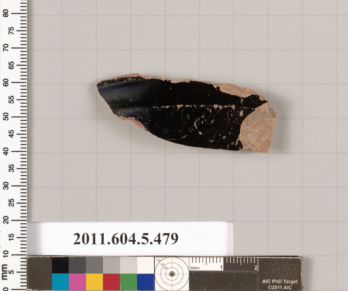 - Title: Terracotta rim fragment of a kylix (drinking cup)