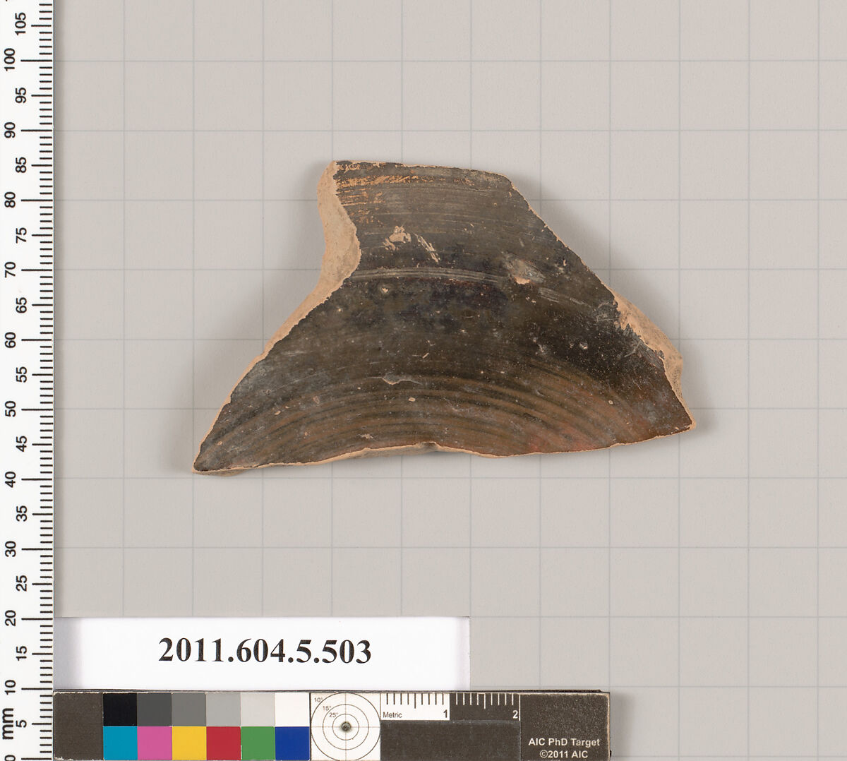 - Title:Terracotta fragment of a kylix (drinking cup)