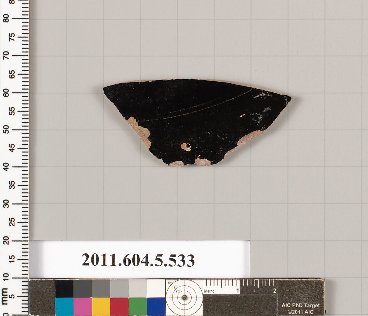 - Title:Terracotta fragment of a kylix (drinking cup)