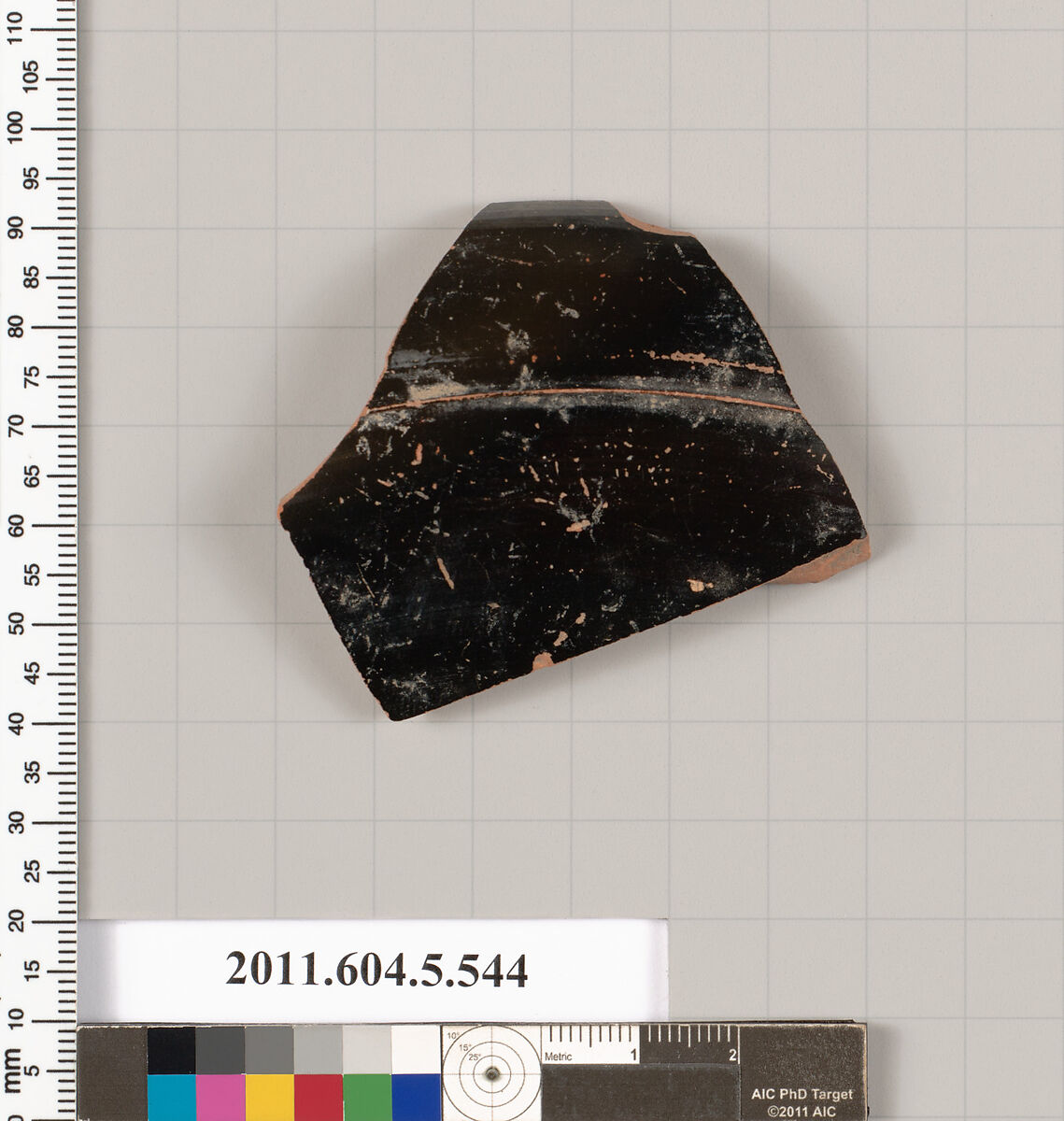- Title: Terracotta rim fragment of a kylix (drinking cup)