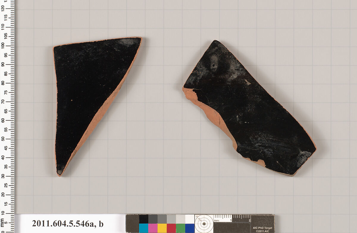 - Title:Terracotta fragments of a kylix (drinking cup)
