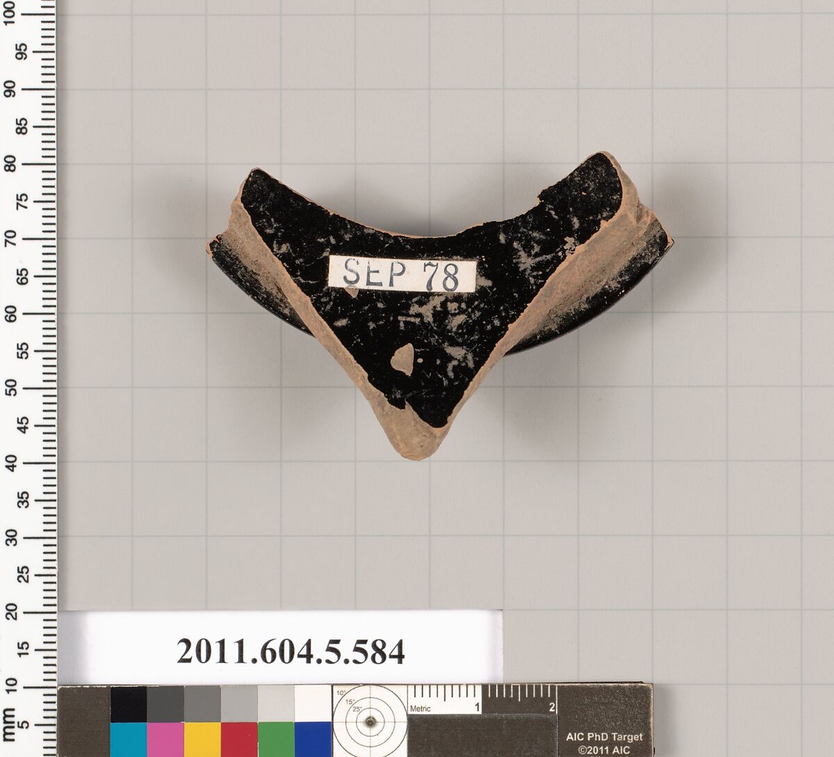 - Title:Terracotta fragment of a stemless kylix (drinking cup)
