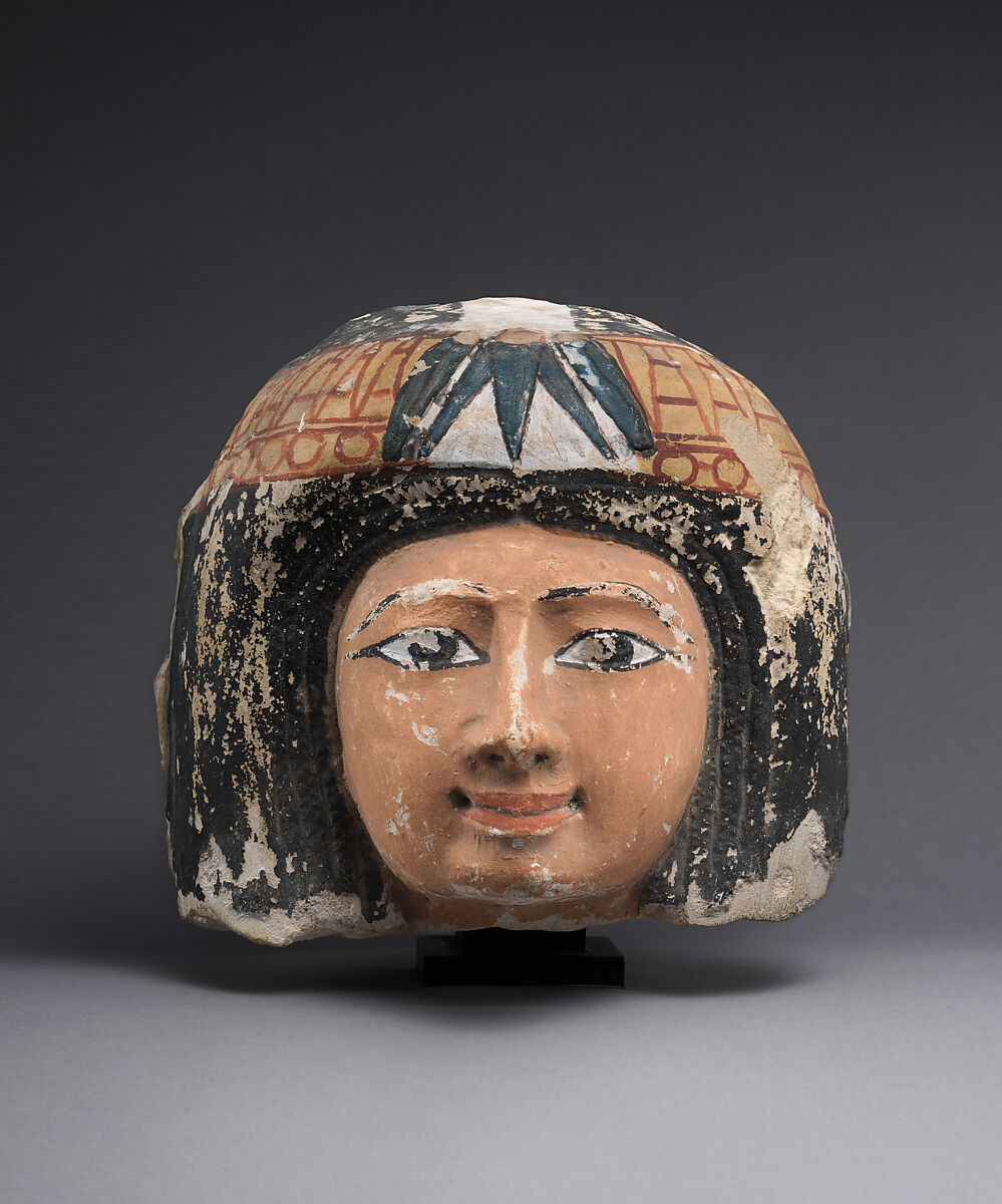 The head is a rare example of late Ramesside private statuary. With her elaborate wig and colorful floral fillet, the piece represents a woman of the elite, who was probably shown with her husband. Their statues would have been carved into a niche in the tomb chapel, where family members and visitors could appreciate this lifelike art, give offerings, pronounce their names, and therefore contribute to their afterlife.