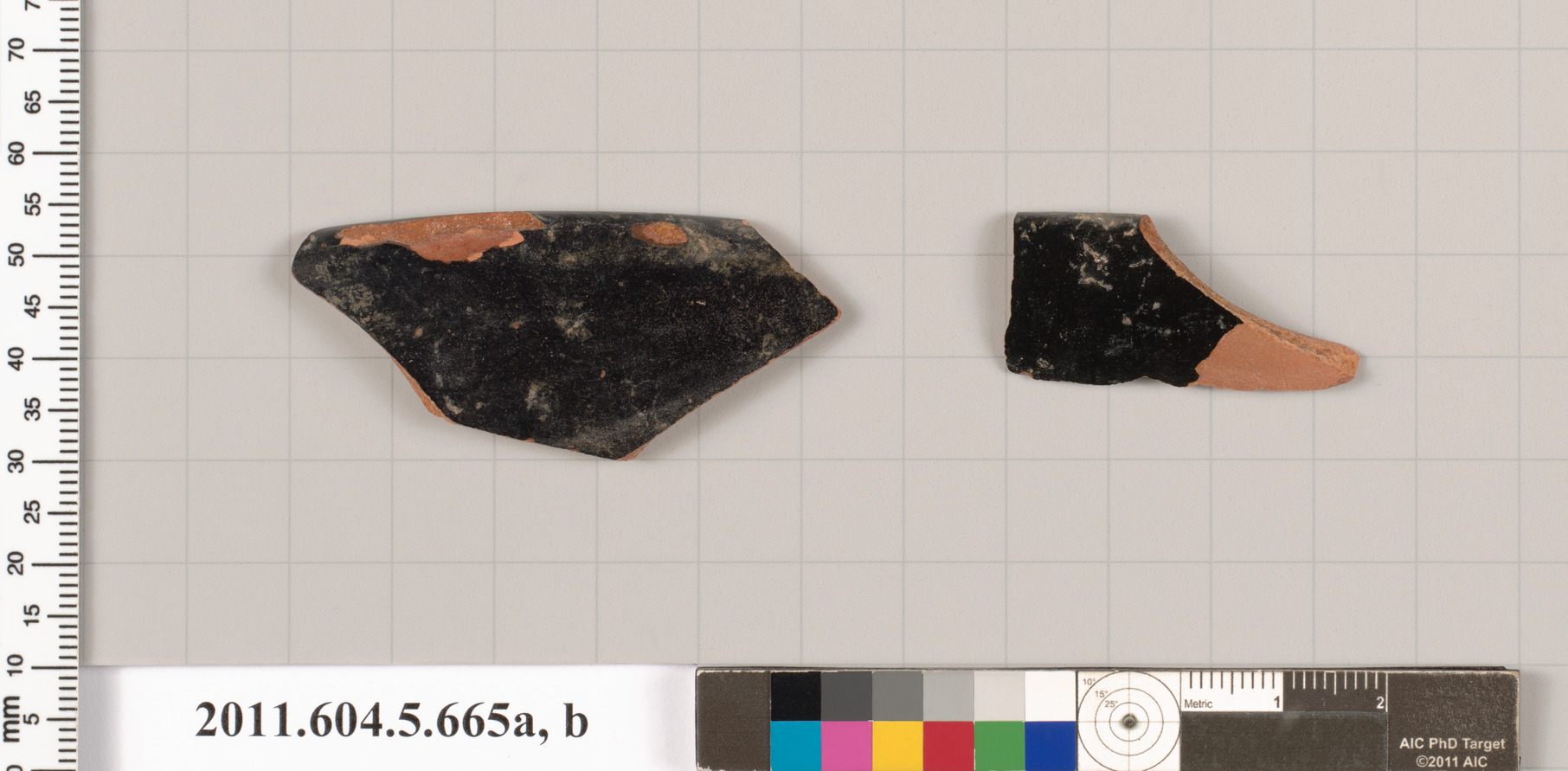 Two rim fragments from kylikes, each with a bit of the glaze worn