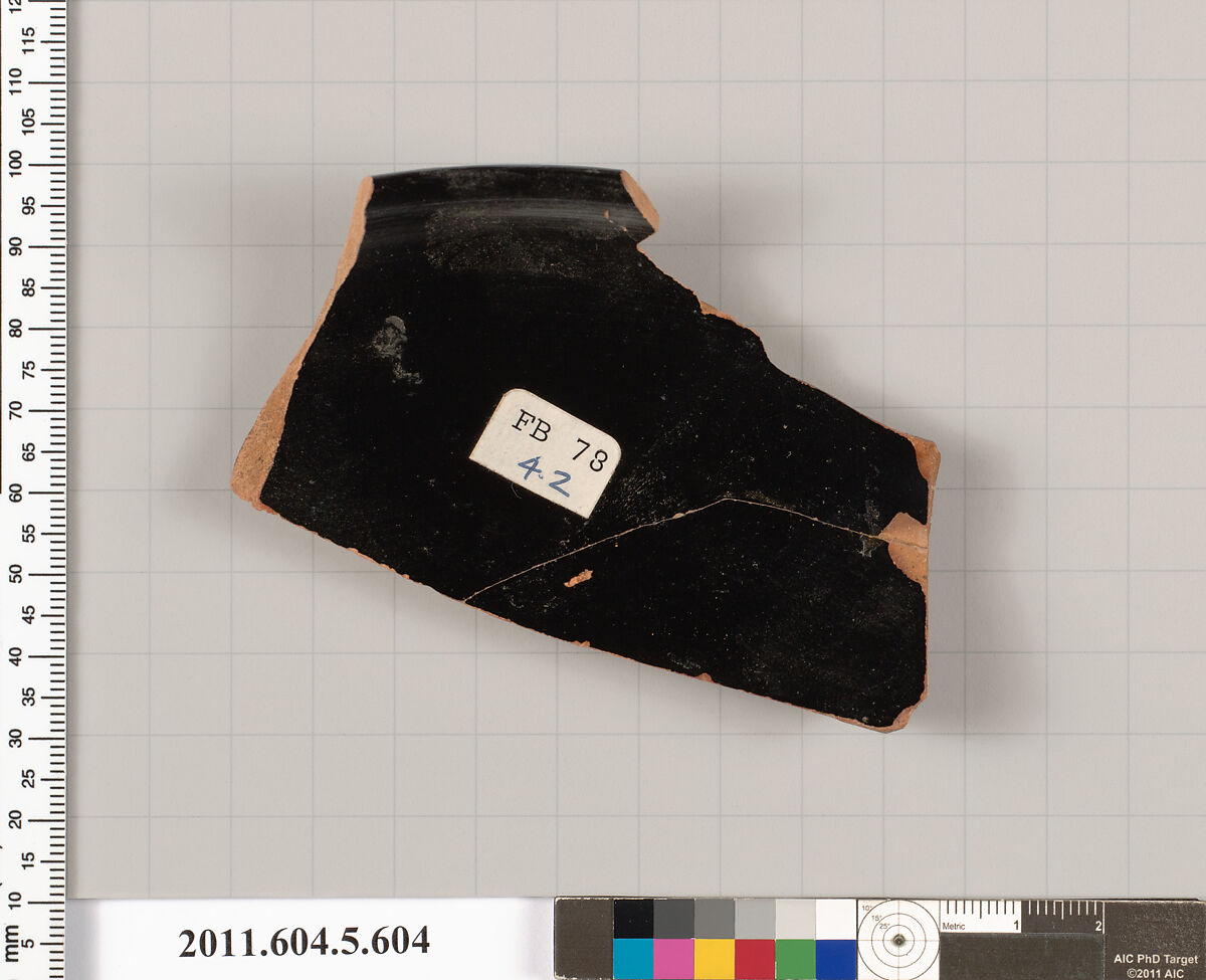 - Title: Terracotta rim fragment of a kylix (drinking cup)