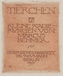 - Title: "Animals," Small Etchings by Marcus Behmer, Graphisches Kabinett, J.B. Neumann, Berlin 1913