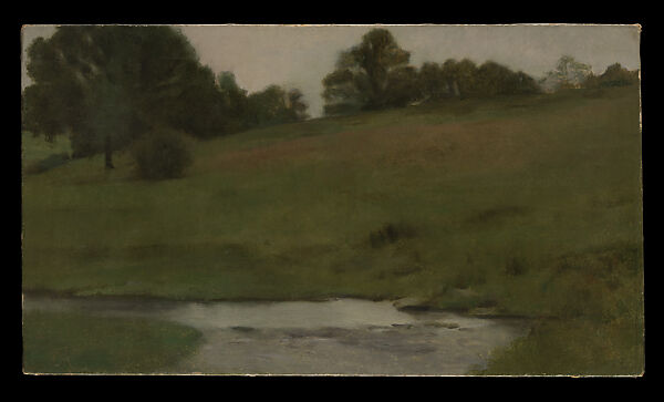 This work of art is currently on loan to the museum.Khnopff’s family spent summers on their property in the hamlet of Fosset in the Ardennes region of southeast Belgium. The artist made many paintings of the verdant countryside, which he described as a "silent landscape of heather and forests stretching along the long hills." His feathery brushwork and silvery palette capture the misty Belgian twilight and impart an air of melancholy to the tranquil scenery.