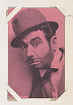 From Movie Stars Exhibit Cards series (W401). Distributed by Distributed by Exhibit Supply Company of Chicago. Postcard-sized thick card. Dispensed in arcade machines. Pink toned.