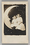 At the height of the picture postcard craze in the early twentieth century, photo studios at beach resorts, state fairs, carnivals, and downtown arcades offered a variety of playful props and backdrops for sitters to pose against. During the same period, there was a resurgence of popular interest in the romance of the Moon, as evidenced in countless Tin Pan Alley songs, such as "Shine On, Harvest Moon" (1908), "By the Light of the Silvery Moon" (1909), and "I’ll Sit Right on the Moon and Keep My Eyes on You" (1912). Given this confluence, it is not surprising that one of the most popular studio props was the "paper moon," a cut-out crescent moon set in front of a backdrop painted with stars and the occasional comet (inspired by the passing of Halley’s comet in 1910). Decades before the first spacecraft were launched into orbit, thousands of individuals commemorated their own imaginary lunar voyages with these charming photographic souvenirs.
