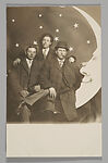 At the height of the picture postcard craze in the early twentieth century, photo studios at beach resorts, state fairs, carnivals, and downtown arcades offered a variety of playful props and backdrops for sitters to pose against. During the same period, there was a resurgence of popular interest in the romance of the Moon, as evidenced in countless Tin Pan Alley songs, such as "Shine On, Harvest Moon" (1908), "By the Light of the Silvery Moon" (1909), and "I’ll Sit Right on the Moon and Keep My Eyes on You" (1912). Given this confluence, it is not surprising that one of the most popular studio props was the "paper moon," a cut-out crescent moon set in front of a backdrop painted with stars and the occasional comet (inspired by the passing of Halley’s comet in 1910). Decades before the first spacecraft were launched into orbit, thousands of individuals commemorated their own imaginary lunar voyages with these charming photographic souvenirs.