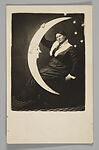 At the height of the picture postcard craze in the early twentieth century, photo studios at beach resorts, state fairs, carnivals, and downtown arcades offered a variety of playful props and backdrops for sitters to pose against. During the same period, there was a resurgence of popular interest in the romance of the Moon, as evidenced in countless Tin Pan Alley songs, such as "Shine On, Harvest Moon" (1908), "By the Light of the Silvery Moon" (1909), and "I’ll Sit Right on the Moon and Keep My Eyes on You" (1912). Given this confluence, it is not surprising that one of the most popular studio props was the "paper moon," a cut-out crescent moon set in front of a backdrop painted with stars and the occasional comet (inspired by the passing of Halley’s comet in 1910). Decades before the first spacecraft were launched into orbit, thousands of individuals commemorated their own imaginary lunar voyages with these charming photographic souvenirs.