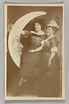 At the height of the picture postcard craze in the early twentieth century, photo studios at beach resorts, state fairs, carnivals, and downtown arcades offered a variety of playful props and backdrops for sitters to pose against. During the same period, there was a resurgence of popular interest in the romance of the Moon, as evidenced in countless Tin Pan Alley songs, such as "Shine On, Harvest Moon" (1908), "By the Light of the Silvery Moon" (1909), and "I’ll Sit Right on the Moon and Keep My Eyes on You" (1912). Given this confluence, it is not surprising that one of the most popular studio props was the "paper moon," a cut-out crescent moon set in front of a backdrop painted with stars and the occasional comet (inspired by the passing of Halley’s comet in 1910). Decades before the first spacecraft were launched into orbit, thousands of individuals commemorated their own imaginary lunar voyages with these charming photographic souvenirs.