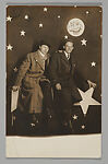 At the height of the picture postcard craze in the early twentieth century, photo studios at beach resorts, state fairs, carnivals, and downtown arcades offered a variety of playful props and backdrops for sitters to pose against. During the same period, there was a resurgence of popular interest in the romance of the Moon, as evidenced in countless Tin Pan Alley songs, such as "Shine On, Harvest Moon" (1908), "By the Light of the Silvery Moon" (1909), and "I’ll Sit Right on the Moon and Keep My Eyes on You" (1912). Given this confluence, it is not surprising that one of the most popular studio props was the "paper moon," a cut-out crescent moon set in front of a backdrop painted with stars and the occasional comet (inspired by the passing of Halley’s comet in 1910). Decades before the first spacecraft were launched into orbit, thousands of individuals commemorated their own imaginary lunar voyages with these charming photographic souvenirs.
