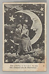 At the height of the picture postcard craze in the early twentieth century, photo studios at beach resorts, state fairs, carnivals, and downtown arcades offered a variety of playful props and backdrops for sitters to pose against. During the same period, there was a resurgence of popular interest in the romance of the Moon, as evidenced in countless Tin Pan Alley songs, such as "Shine On, Harvest Moon" (1908), "By the Light of the Silvery Moon" (1909), and "I’ll Sit Right on the Moon and Keep My Eyes on You" (1912). Given this confluence, it is not surprising that one of the most popular studio props was the "paper moon," a cut-out crescent moon set in front of a backdrop painted with stars and the occasional comet (inspired by the passing of Halley’s comet in 1910). Decades before the first spacecraft were launched into orbit, thousands of individuals commemorated their own imaginary lunar voyages with these charming photographic souvenirs.