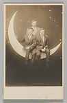 At the height of the picture postcard craze in the early twentieth century, photo studios at beach resorts, state fairs, carnivals, and downtown arcades offered a variety of playful props and backdrops for sitters to pose against. During the same period, there was a resurgence of popular interest in the romance of the Moon, as evidenced in countless Tin Pan Alley songs, such as "Shine On, Harvest Moon" (1908), "By the Light of the Silvery Moon" (1909), and "I’ll Sit Right on the Moon and Keep My Eyes on You" (1912). Given this confluence, it is not surprising that one of the most popular studio props was the "paper moon," a cut-out crescent moon set in front of a backdrop painted with stars and the occasional comet (inspired by the passing of Halley’s comet in 1910). Decades before the first spacecraft were launched into orbit, thousands of individuals commemorated their own imaginary lunar voyages with these charming photographic souvenirs.