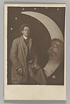 At the height of the picture postcard craze in the early twentieth century, photo studios at beach resorts, state fairs, carnivals, and downtown arcades offered a variety of playful props and backdrops for sitters to pose against. During the same period, there was a resurgence of popular interest in the romance of the Moon, as evidenced in countless Tin Pan Alley songs, such as "Shine On, Harvest Moon" (1908), "By the Light of the Silvery Moon" (1909), and "I’ll Sit Right on the Moon and Keep My Eyes on You" (1912). Given this confluence, it is not surprising that one of the most popular studio props was the "paper moon," a cut-out crescent moon set in front of a backdrop painted with stars and the occasional comet (inspired by the passing of Halley’s comet in 1910). Decades before the first spacecraft were launched into orbit, thousands of individuals commemorated their own imaginary lunar voyages with these charming photographic souvenirs.
