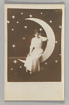 At the height of the picture postcard craze in the early twentieth century, photo studios at beach resorts, state fairs, carnivals, and downtown arcades offered a variety of playful props and backdrops for sitters to pose against. During the same period, there was a resurgence of popular interest in the romance of the Moon, as evidenced in countless Tin Pan Alley songs, such as "Shine On, Harvest Moon" (1908), "By the Light of the Silvery Moon" (1909), and "I’ll Sit Right on the Moon and Keep My Eyes on You" (1912). Given this confluence, it is not surprising that one of the most popular studio props was the "paper moon," a cut-out crescent moon set in front of a backdrop painted with stars and the occasional comet (inspired by the passing of Halley’s comet in 1910). Decades before the first spacecraft were launched into orbit, thousands of individuals commemorated their own imaginary lunar voyages with these charming photographic souvenirs.