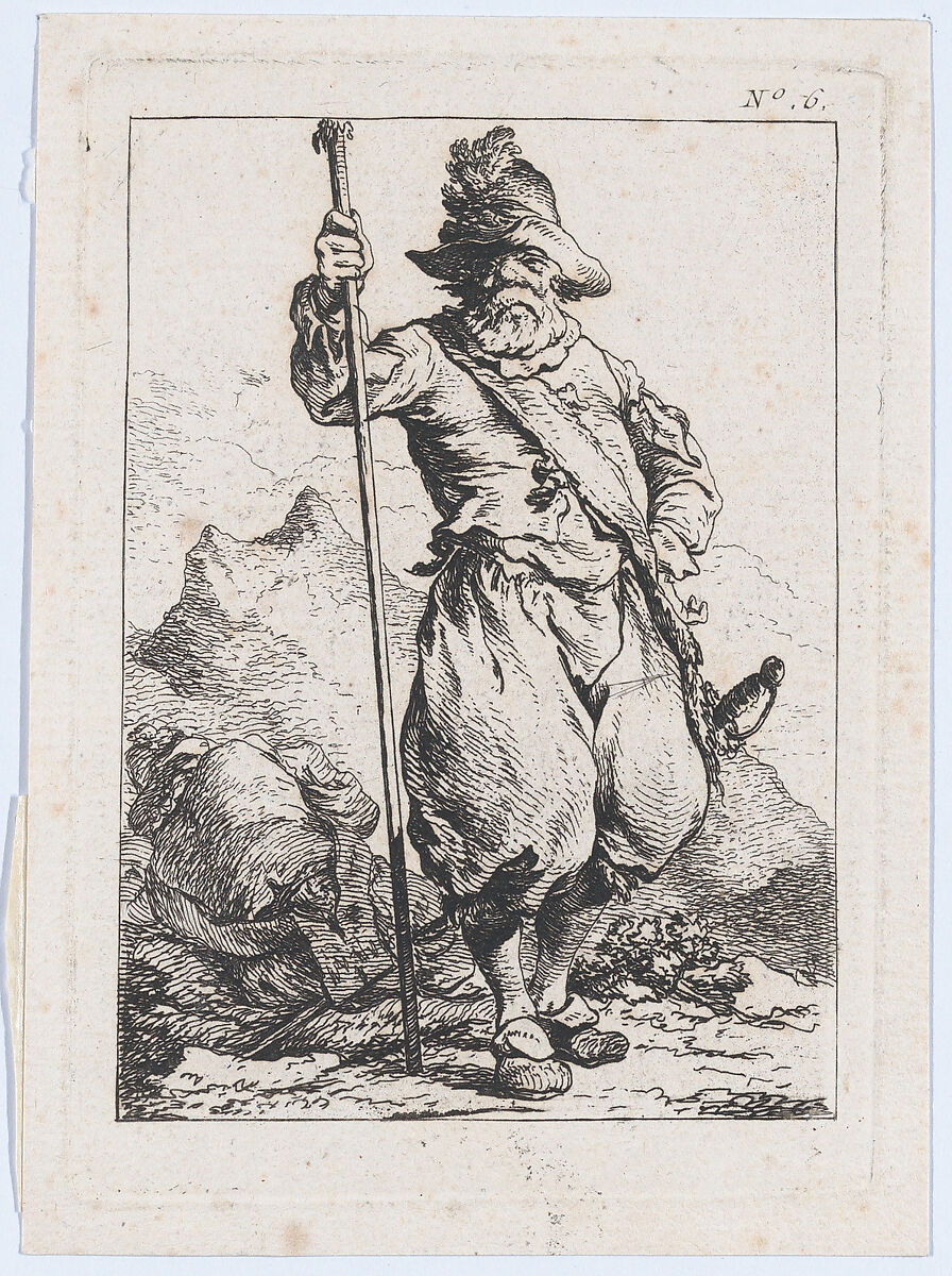 Loutherbourg, an Alsatian painter who studied etching in Johann Georg Wille’s academy, clearly admired the prints of the seventeenth-century Neapolitan painter Salvator Rosa, as did many other French printmakers of the time. In the set to which this print belongs (2018.53.1-6), entitled "Second Suite of Figures,"Loutherbourg took up a format associated with Rosa in order to showcase his own inventiveness and fluency.
