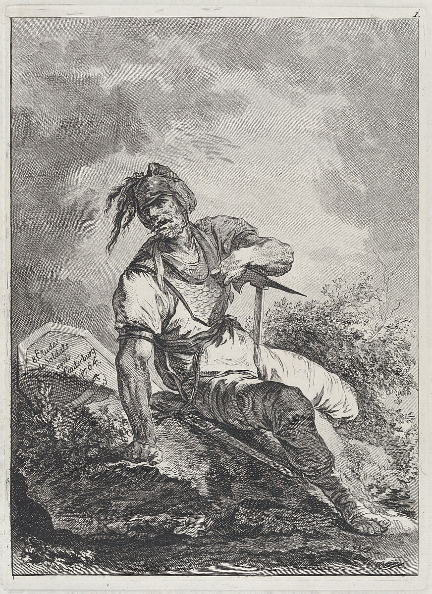 This print comes from a set of "Eight Studies of Soldiers" (2018.54.1-.8) designed by Loutherbourg during his Paris years, 1755–71. While himself an accomplished printmaker, Loutherbourg here turned the etching over to the Zurich-born Matthias Pfenninger, then studying in Paris. The images demonstrate admiration for the Italian 17th-century printmaker, Salvator Rosa.