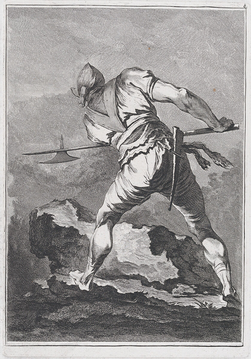 This print comes from a set of "Eight Studies of Soldiers" (2018.54.1-.8) designed by Loutherbourg during his Paris years, 1755–71. While himself an accomplished printmaker, Loutherbourg here turned the etching over to the Zurich-born Matthias Pfenninger, then studying in Paris. The images demonstrate admiration for the Italian 17th-century printmaker, Salvator Rosa.